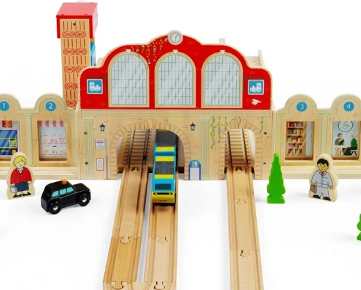 La gare centrale Bigjigs Rail est un accessoire en bois stylé et ludique pour tout circuit de train, idéal pour les enfants dès 3 ans.
