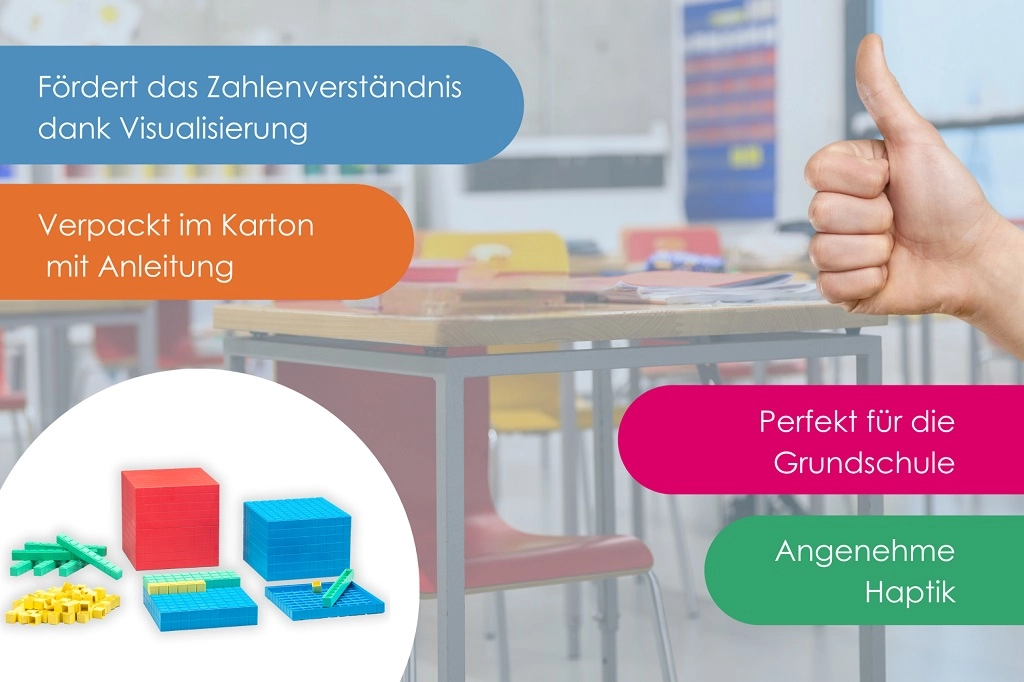 Cet ensemble remarquable de 121 pièces en RE-plastique durable aide les enfants dès 6 ans à développer leurs compétences mathématiques de manière ludique. Il contient des éléments colorés pour la reconnaissance des structures et des valeurs, idéal pour l’école primaire comme pour la maison.