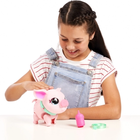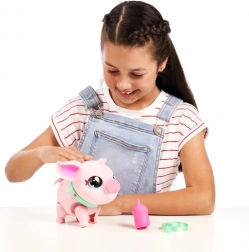 Découvre un compagnon magique qui prend vie entre les mains des enfants. Piggly est un petit cochon tout doux et rose, avec des yeux craquants et un collier, qui réagit aux caresses, aux mouvements et aux soins. Grâce à la laisse, tu peux facilement l’emmener en promenade et, lorsqu’il a faim, le nourrir au biberon.