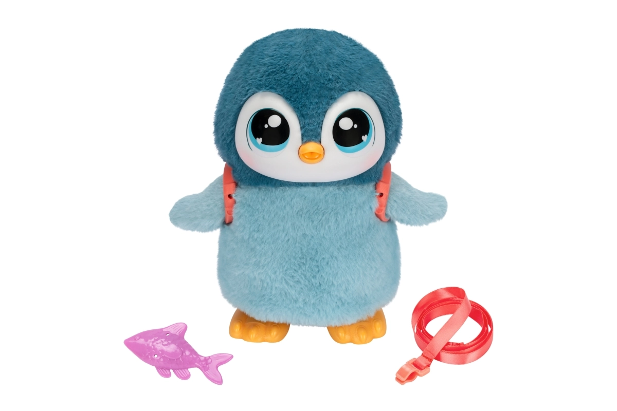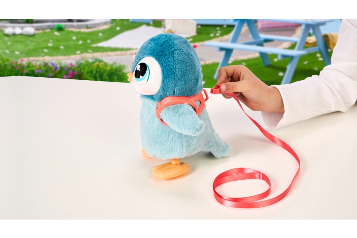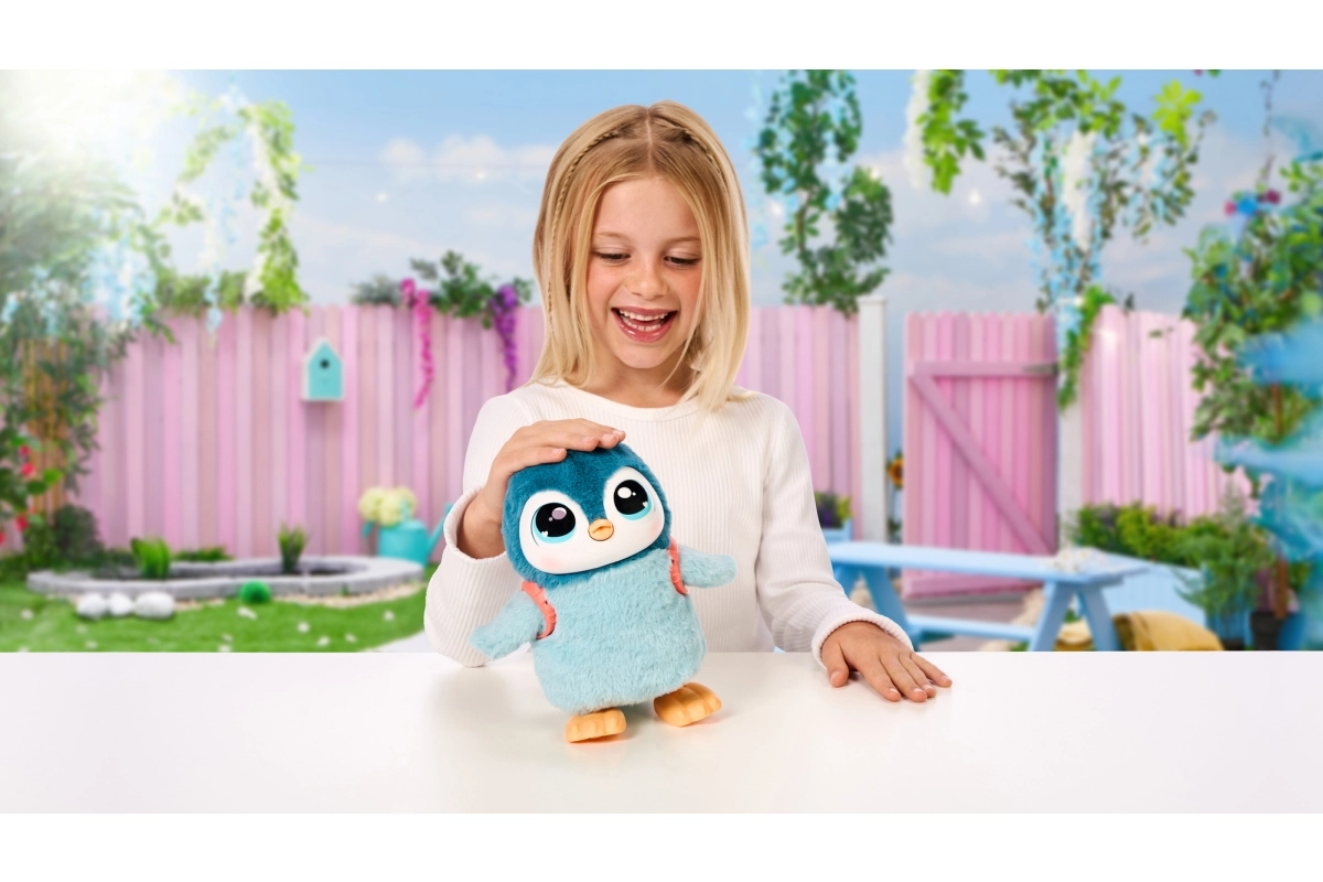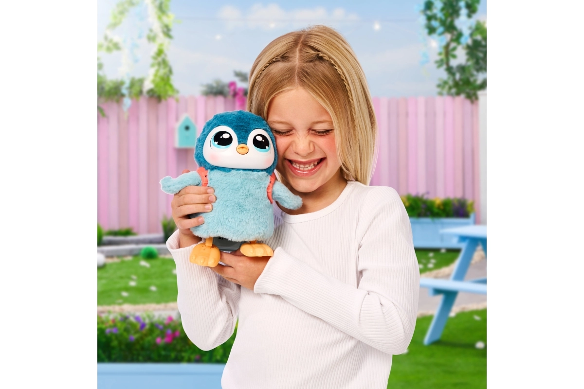Ce pingouin craquant offre aux enfants une multitude d’amusements interactifs. Une fois la laisse attachée, il peut se promener, bat des ailes, hoche la tête et réagit à vos caresses. Il émet des sons adorables – pendant le repas, des gloussements jusqu’aux éternuements – et parfois des bruitages rigolos qui amuseront les enfants.