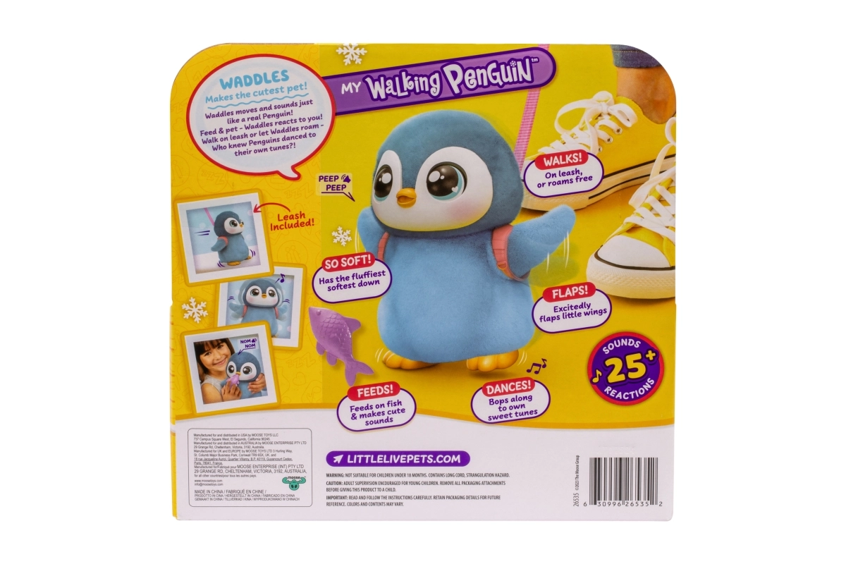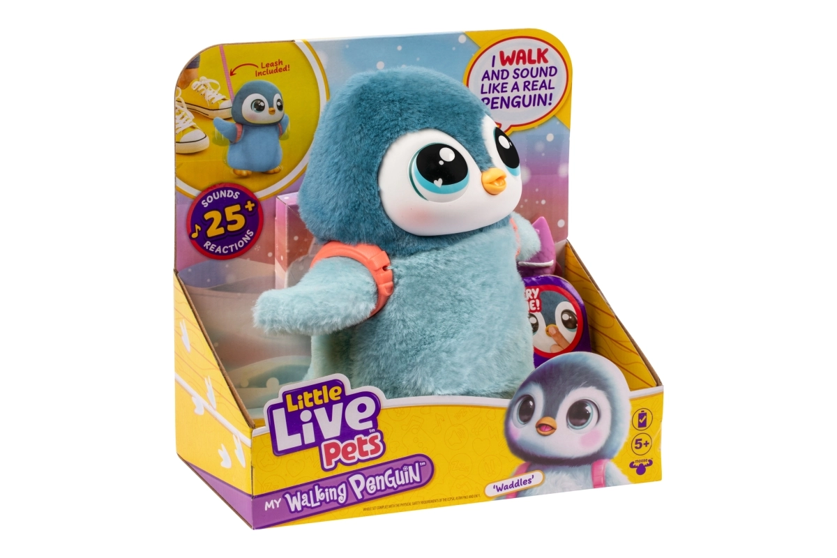 Découvrez un adorable compagnon pour enfants – un pingouin en peluche interactif de la gamme Little Live Pets, qui marche, bat des ailes et hoche la tête. Il propose plus de 25 sons et réactions, réagit au toucher, se nourrit de petits poissons et, grâce à sa fourrure douce et duveteuse, est idéal pour les câlins. Un laisse amovible est incluse pour les promenades et le jeu.