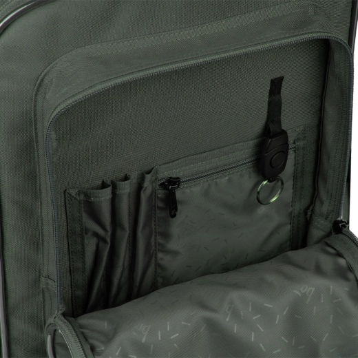 - Le compartiment avant comprend un organiseur pratique et un mousqueton amovible pour les clés.