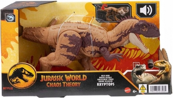 Figurine de dinosaure Kryptops avec rugissement sauvage et parties articulées pour les fans de Jurassic World.