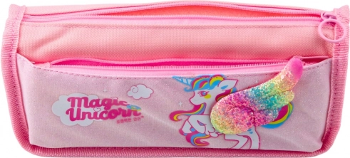 Trousse scolaire Licorne avec aile pailletée 3D rose