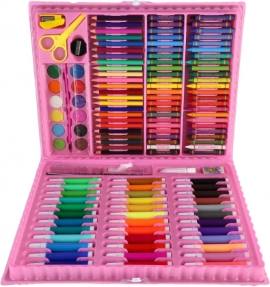 - Un choix varié : crayons de couleur, feutres, crayons de cire, aquarelles, pinceau, règle et d’autres accessoires utiles