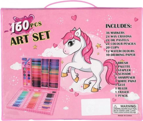 Découvrez un monde de fantaisie avec ce coffret créatif de peinture à motif licorne. Dans une valisette pratique en plastique, vous trouverez 160 accessoires artistiques – crayons de couleur, feutres, crayons de cire, aquarelles et d’autres fournitures qui stimulent la créativité et développent la motricité fine. Idéal pour créer à la maison comme en voyage grâce à ses dimensions compactes et à son rangement bien organisé.