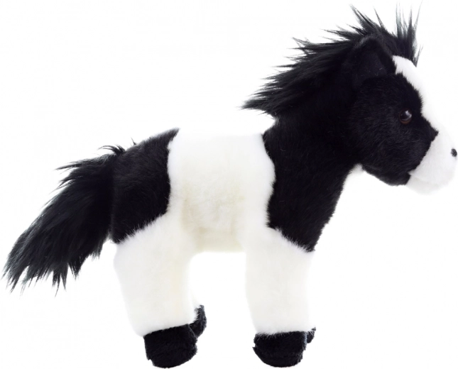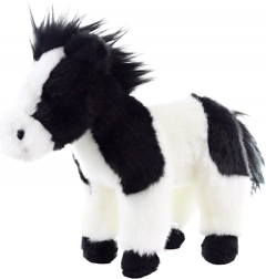 Le cheval en peluche possède un motif noir et blanc réaliste qui donne un aspect authentique. Sa crinière et sa queue douces renforcent le sentiment de réalisme.