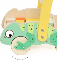 Le chariot en bois de la marque Classic World est équipé de pattes de caméléon mobiles sur la roue, ajoutant du plaisir lors de la poussée. Il comprend également des blocs de différentes formes et couleurs permettant un empilage libre et le développement de la créativité et des compétences pratiques. Un labyrinthe avec des perles sur la poignée offre une autre option de jeu interactif, soutenant la coordination œil-main et la dextérité.