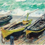 - Illustration - Trois bateaux de pêche en mer, entièrement illustrés