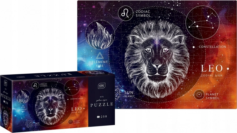 Puzzle Zodiaque Lion avec 250 pièces, dimensions 48×33 cm. Divertissement pour les amateurs d’astrologie.