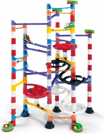 Piste à billes colorée pour enfants dès 6 ans, qui stimule leur créativité et leur imagination. En assemblant les pièces, les enfants peuvent créer des parcours variés remplis de ponts, de spirales et d’autres obstacles amusants à regarder.