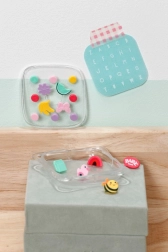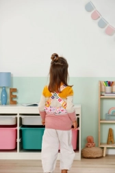 Un ensemble d’ornements colorés faciles à clipser permet aux enfants de changer le look du porte-bébé selon leur humeur. Une petite boîte de rangement est incluse.