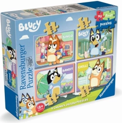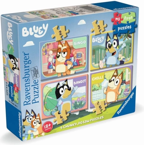Faites plaisir à vos enfants avec ce kit créatif Mes premiers puzzles Bluey de la marque Ravensburger. Assembler des puzzles développe la pensée logique et la motricité fine. Ce set, conçu pour les tout-petits, contient différentes variantes de nombre de pièces, ce qui permet d’augmenter progressivement la difficulté de l’assemblage :