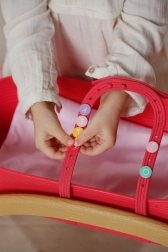 De jolis boutons colorés se clipsent facilement sur les poignées et le bord du couffin. Les enfants personnalisent ainsi le lit encore et encore et stimulent leur imagination.