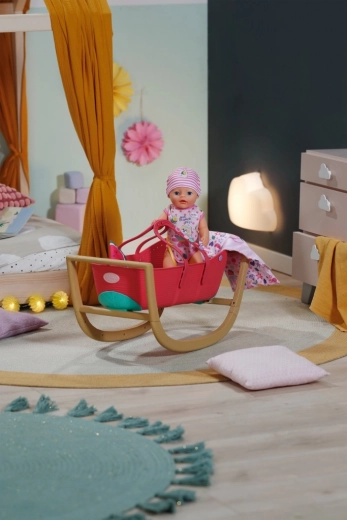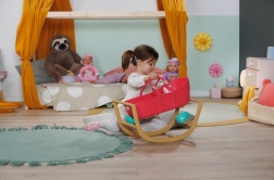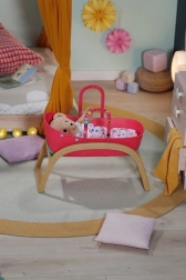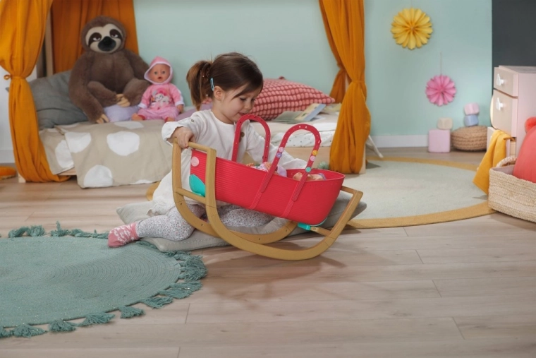 Découvrez le lit 3 en 1 pratique pour poupées BABY born, qui évolue avec l’imagination des enfants. En un clin d’œil, passez d’un berceau élégant à un couffin transportable avec poignées intégrées, ou à un lit pour enfant stable. La cuve en plastique légère combinée au socle à bascule au look bois garantit un transport facile et un balancement fluide en toute sécurité.