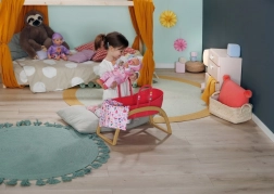 Un seul jouet se transforme selon les besoins – du couffin transportable avec poignées au lit fixe, ou en un berceau apaisant avec un balancement fluide.