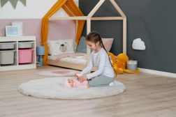 Il suffit de la bercer doucement dans deux directions pour qu’elle s’endorme. En bougeant ses bras et ses jambes, elle émet des sons joyeux, amusants aussi lors des chatouilles.