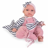 Présentation de la poupée réaliste bébé d'Antonio Juan, qui émet des sons de babillage infantil. Cette poupée espagnole a un corps en tissu doux et des parties fabriquées en vinyle souple de haute qualité.