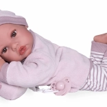 La poupée permet le positionnement grâce aux articulations des bras et des jambes, ce qui lui permet de s'asseoir seule sans soutien. Les vêtements de certaines poupées sont réalisés en coton biologique, respectueux de la nature. La marque Antonio Juan est connue pour son engagement en faveur de l'écologie. La taille de la poupée est de 42 cm, idéale pour jouer et prendre soin.