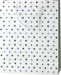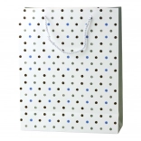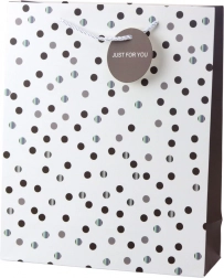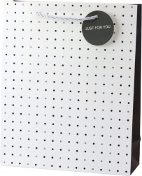 Sac cadeau élégant fabriqué en papier laminé robuste, garantissant sa durabilité et son aspect esthétique. Les poignées en corde torsadée offrent un transport confortable et sûr, même pour des cadeaux plus lourds. Une étiquette ronde décorative avec l’inscription « Just for you » ajoute une touche personnelle.