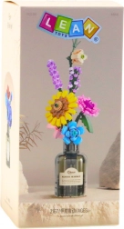 Nous vous présentons une boîte de construction originale qui permet de créer un bouquet coloré impressionnant, riche en variétés de fleurs. La vedette est le tournesol, accompagné d’une rose bleue, de lavande violette et d’œillets pastel. Cette composition est une décoration idéale pour l’été et pour la maison.