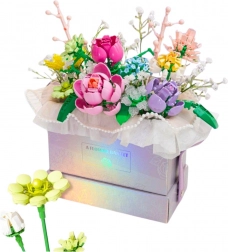 Composition florale romantique en blocs de construction dans une boîte décorative avec éclairage LED, un choix idéal pour tous ceux qui aiment les décorations élégantes et le divertissement créatif.