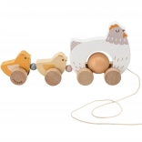 Poule en bois avec poussins à tirer – amusement et apprentissage réunis ! Cet adorable compagnon est idéal pour les enfants qui commencent à marcher. Les petits poussins se balancent joyeusement pendant le mouvement, et l’œuf détachable tourne pour encore plus de plaisir. Ce jouet divertit tout en favorisant la coordination et les compétences motrices de l’enfant.