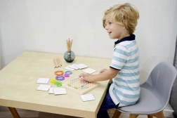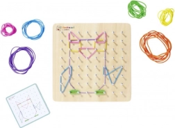 Cette planche géométrique Montessori est conçue pour stimuler la créativité et les compétences motrices des enfants. Grâce à ses 64 clous et 60 élastiques colorés, les enfants peuvent réaliser une grande variété de motifs et de formes :