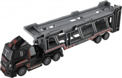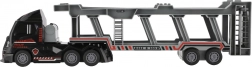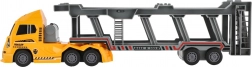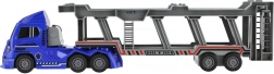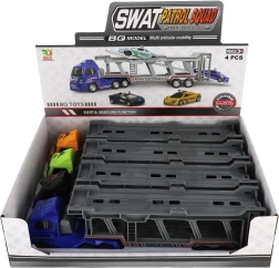 Libérez le plaisir avec ce camion porte-voitures en plastique de 45 cm ! Au design réaliste et doté d’un mécanisme à inertie, il est idéal pour transporter trois petites voitures de police. Il permet un chargement et un déchargement faciles grâce à une rampe fonctionnelle.