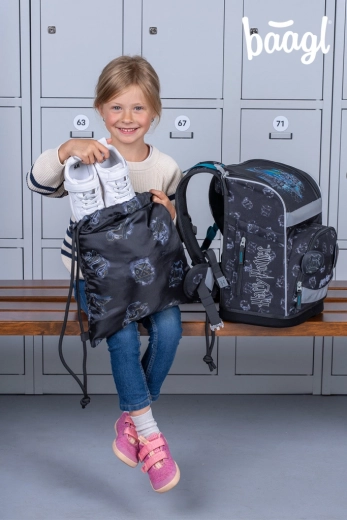 Le set comprend une trousse à un seul étage sans fournitures, qui peut être entièrement dépliée pour une vue d’ensemble parfaite. À l’intérieur, vous trouverez des élastiques robustes, une petite poche pour les bricoles et une fenêtre pour l’emploi du temps. Le sac pratique avec cordons résistants servira pour les chaussons, le sport et les activités de loisirs – il est fabriqué dans un matériau durable et lavable et s’accorde parfaitement avec le cartable.