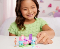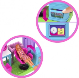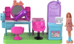 Le set est complété par des éléments interactifs, comme un fauteuil réglable et un panneau rotatif permettant aux enfants d’indiquer si le salon est ouvert ou fermé. La mini poupée Barbie se plie à la taille, ce qui permet de l’installer facilement sur le fauteuil ou à la réception. Un socle en forme de cœur, compatible avec les autres sets Mini BarbieLand, est également inclus.