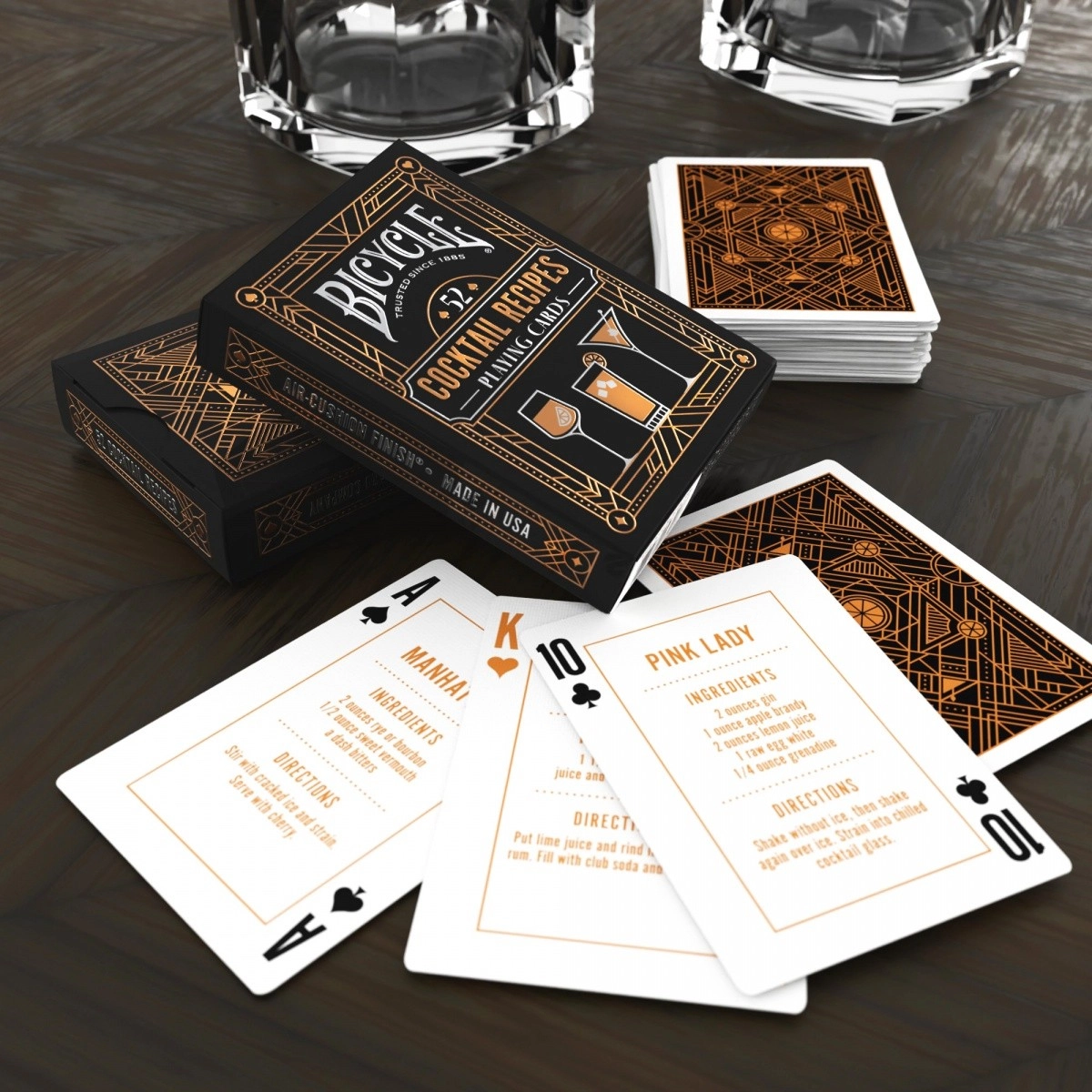 Découvrez 52 recettes de cocktails fabuleux avec les cartes à jouer Bicycle Cocktail. Un choix idéal pour chaque événement social !