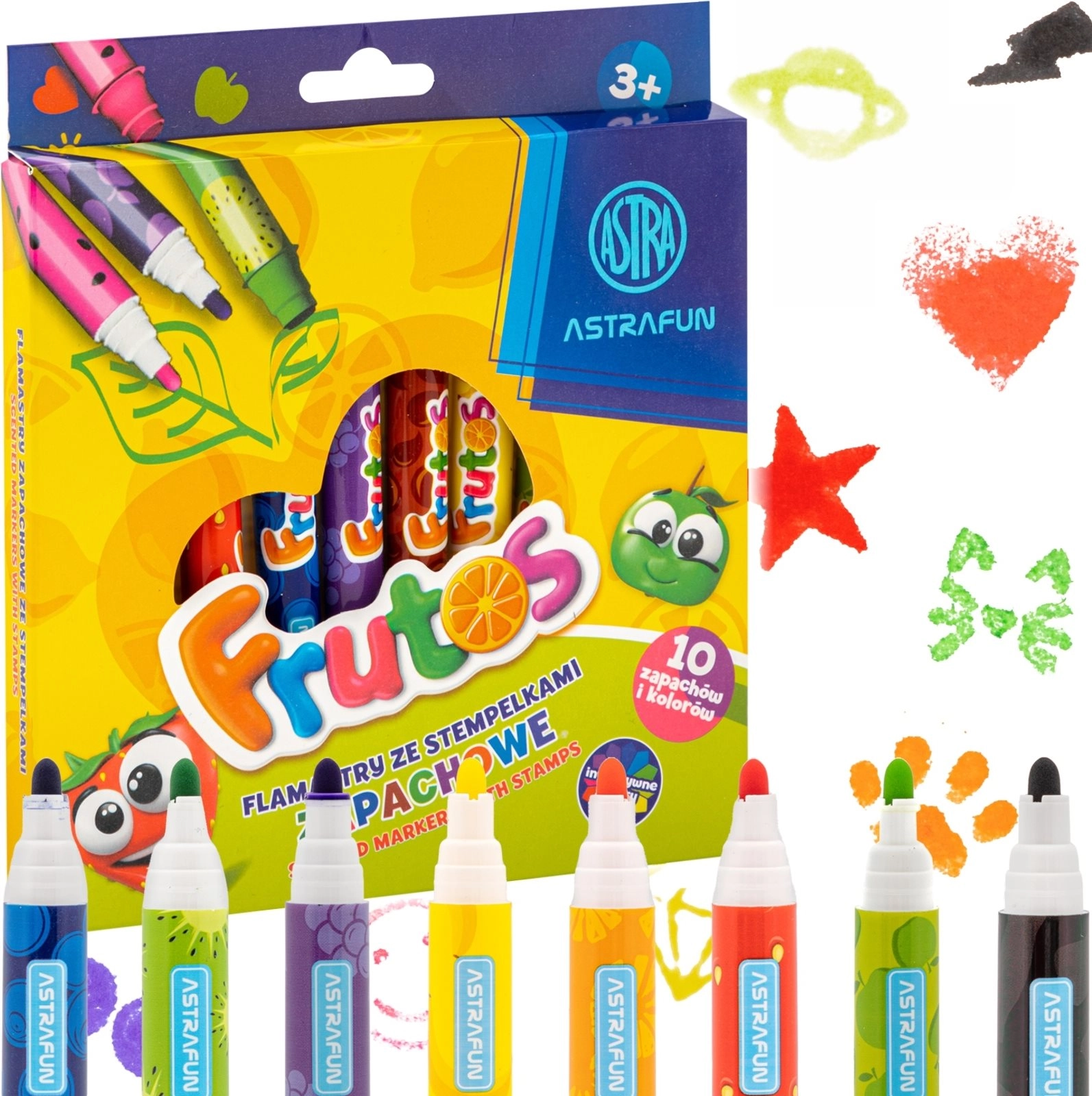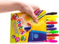 Les feutres parfumés ASTRA Frutos transforment chaque dessin en un jeu sensoriel amusant. Chaque teinte possède un agréable parfum fruité qui stimule la créativité des enfants et rend le temps passé à dessiner, colorier et décorer encore plus plaisant. Le design double pointe associe une pointe ronde classique pour des tracés fluides et une pointe tampon pour créer rapidement des motifs décoratifs.