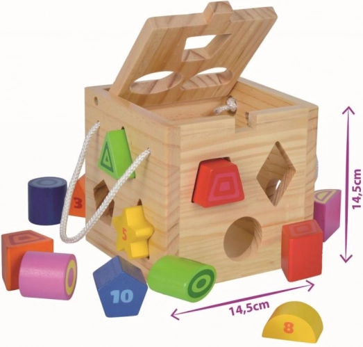 Découvrez le ludique cube en bois – boîte à formes avec 12 formes colorées que les enfants insèrent dans les ouvertures correspondantes. Ce jouet favorise la motricité fine, l’apprentissage des formes et des couleurs ainsi que la patience.