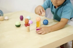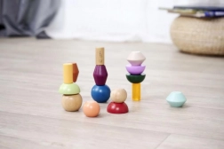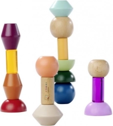 Les blocs sont fabriqués en bois certifié FSC de qualité et conviennent aux enfants à partir de 3 ans. Le set soutient naturellement les principes Montessori – tri, assemblage et découverte des relations entre les formes et les couleurs – tout en développant la motricité fine et la représentation spatiale.