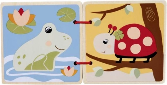 Ce petit livre en bois, léger mais solide, est idéal pour une première découverte des images. Grâce à son format compact, il se tient facilement en main et les pages se tournent aisément même avec de petits doigts.