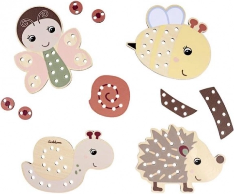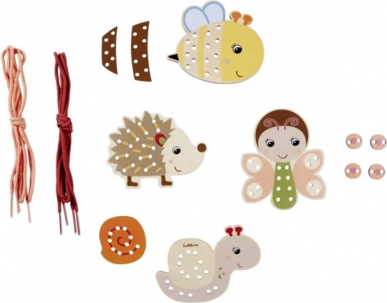 Kit de broderie en bois avec animaux pour des activités créatives. 4 animaux, fils et accessoires, au total 15 pièces. Idéal pour les enfants.