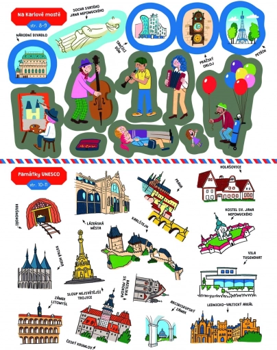 Découvrez les beautés de la République tchèque de façon ludique. Ce grand livre d’autocollants propose plus de 230 autocollants, 24 pages à explorer et 8 pages d’autocollants à compléter. Les enfants exercent leur motricité fine, apprennent les régions, monuments, traditions et symboles de la RT et s’amusent avec une créativité sans limite. Convient aux enfants à partir de 3 ans.