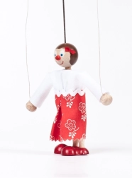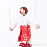 Découvrez la magie de la marionnette traditionnelle avec le personnage de Maruška. Cette marionnette en bois fabriquée à la main est produite dans un atelier protégé et se distingue par son travail soigné. Grâce aux fils de guidage, vous pouvez facilement animer ses bras et donner vie à chaque scène.