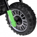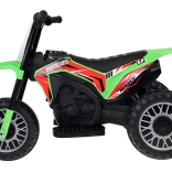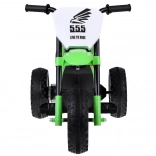 Pour la sécurité de l’enfant, la moto est équipée d’un frein électrique : en relâchant la pédale d’accélérateur, l’arrêt est automatique. Les roues arrière largement espacées augmentent la stabilité et donc la sécurité pendant la conduite. Les bandes amortissantes sur les roues réduisent les vibrations et le bruit sur les surfaces dures et irrégulières, tandis que le siège profilé favorise une posture correcte et le confort.