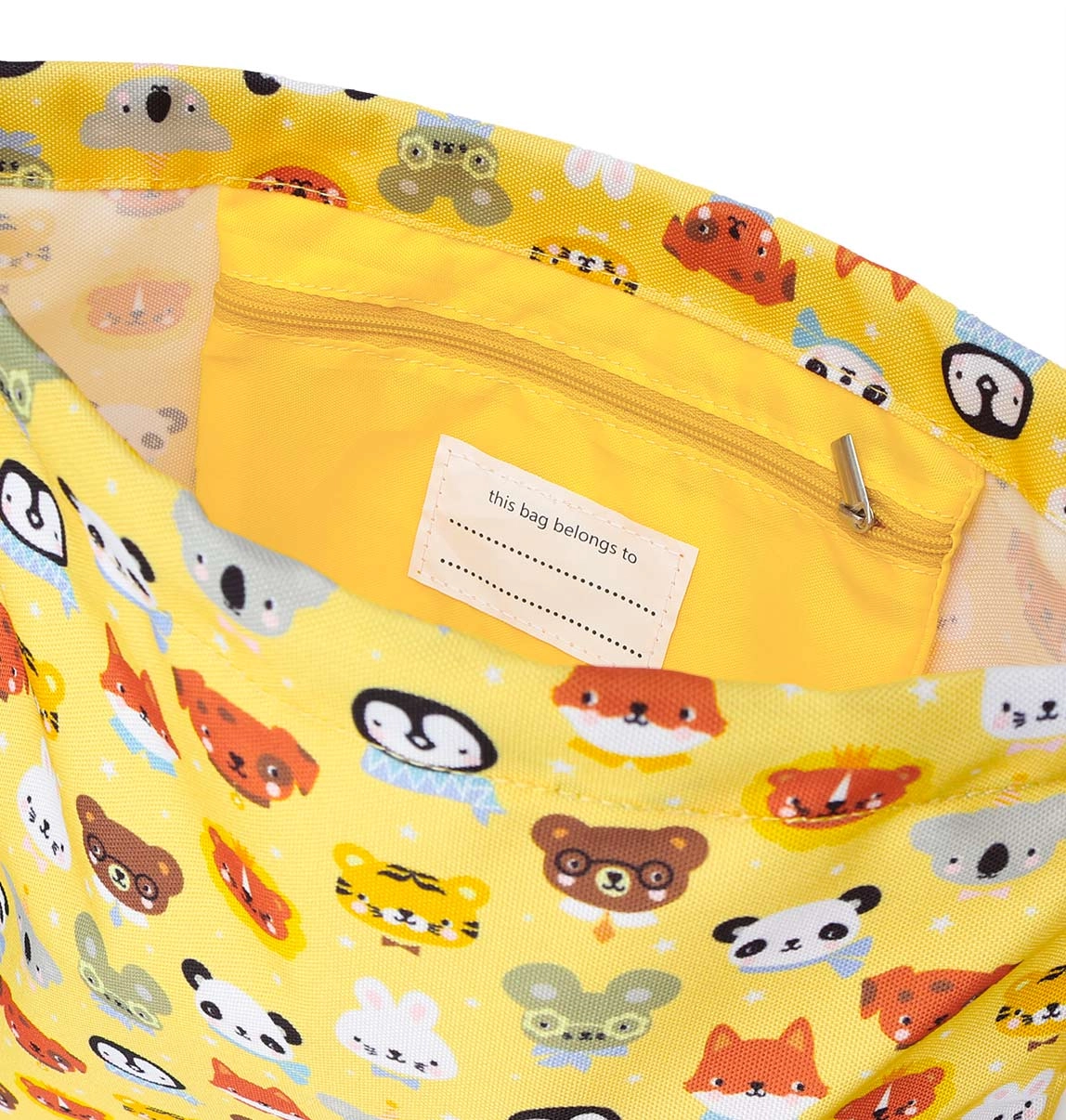 Pratique sac de sport pour enfants à motif joyeux « amis animaux », un excellent choix pour l’école, les activités, la piscine et les sorties du week‑end. Grâce aux cordons de serrage, il s’ouvre rapidement et se ferme en toute sécurité, et vous trouverez à l’intérieur une poche zippée pour les petites affaires, les clés ou de la monnaie.