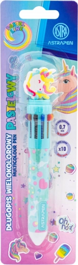 Stylo à bille universel avec 10 couleurs d’encre pastel dans un seul corps pour écrire, dessiner et surligner. Offre une ligne fine de 0,7 mm, un changement de couleur facile grâce au mécanisme automatique et une prise en main ergonomique dans une conception en plastique résistante.