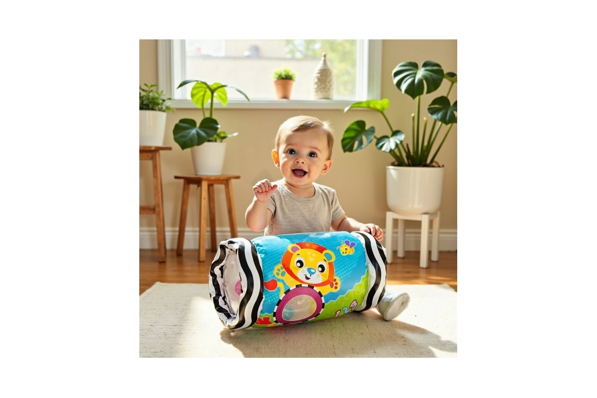- Soutien du rampement et de la coordination : le rouleau se déplace en douceur et incite l’enfant à avancer.