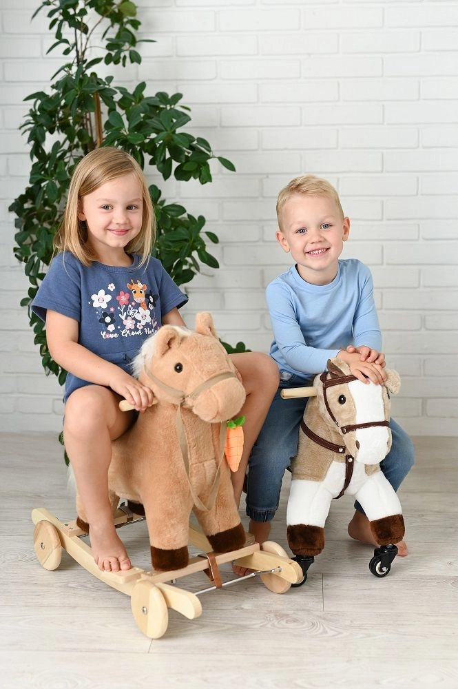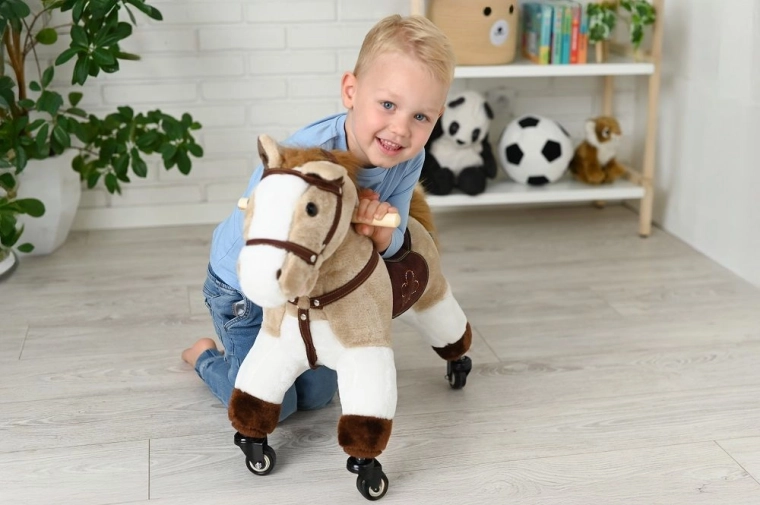 Un compagnon de chevauchée stylé pour les petits amoureux des chevaux. Structure robuste, peluche douce et roulettes vives invitent aux balades dans l’appartement comme dans le couloir.