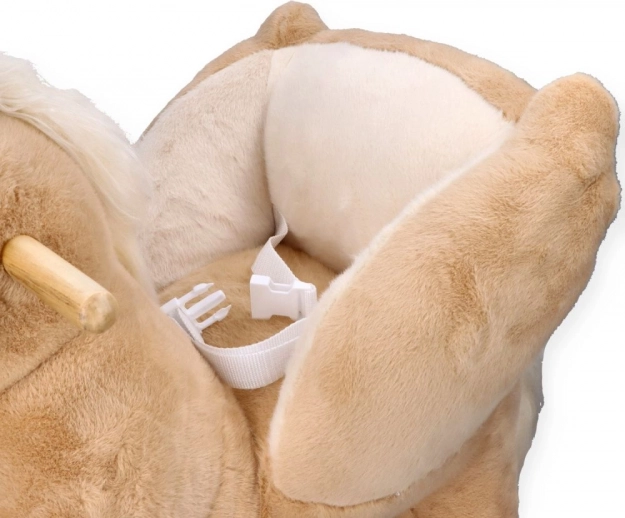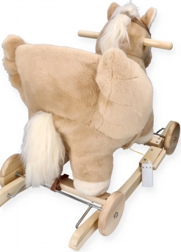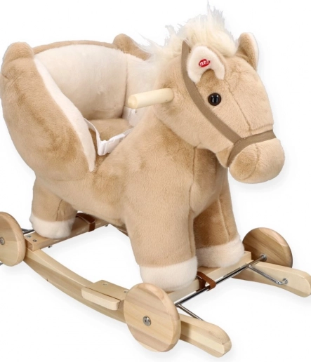 Adorable cheval à bascule Pegas de couleur beige, combinant le bercement classique avec la possibilité de rouler sur des roulettes. Grâce au siège intégré, il est stable et sûr pour les plus petits enfants. Hauteur de selle réglable (env. 31–35 cm), roulettes pour un déplacement facile et commande simple en font un excellent choix pour le jeu quotidien.