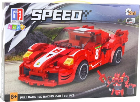 Découvrez un divertissement dynamique avec ce kit 2-en-1 permettant d’assembler une voiture de course rapide et un robot d’action. Grâce au mécanisme à remontage (pull-back), ce n’est pas qu’un modèle d’exposition – la voiture roule vraiment et invite à imaginer des scènes de course. La carrosserie rouge aux détails marqués ravira tous les amateurs de vitesse.