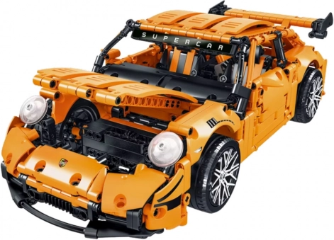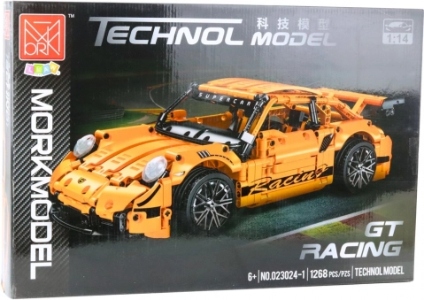 Le kit GT Racing ravira tous les amateurs de voitures de sport et de modèles techniques. Une fois assemblé, le modèle mesure environ 38,5 × 18,8 × 11,6 cm et séduit par sa silhouette de course moderne dans une couleur orange attrayante. Grâce aux pièces conçues avec précision en ABS résistant, l’assemblage est fluide et le résultat à la fois stable et détaillé.