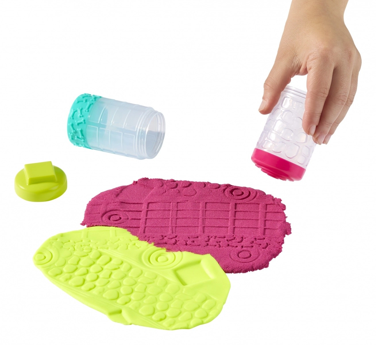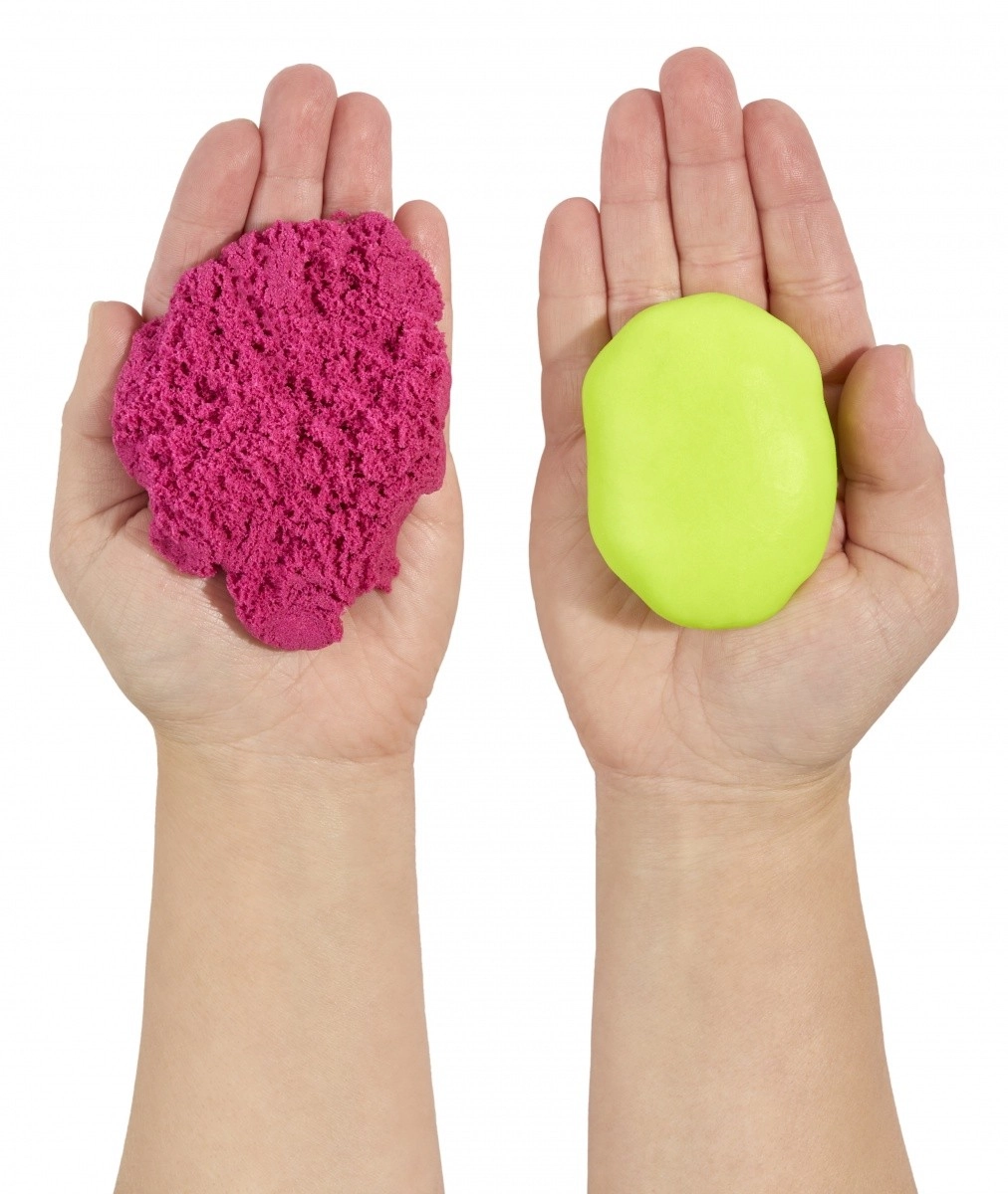 Ce set créatif astucieux propose deux textures différentes pour un maximum de plaisir – une pâte douce et lisse et un sable texturé et modelable. Grâce à sa composition spéciale, la pâte ne sèche pas, permettant aux enfants de jouer encore et encore. Les couleurs vert citron et rose invitent à mélanger formes, motifs et créations originales.