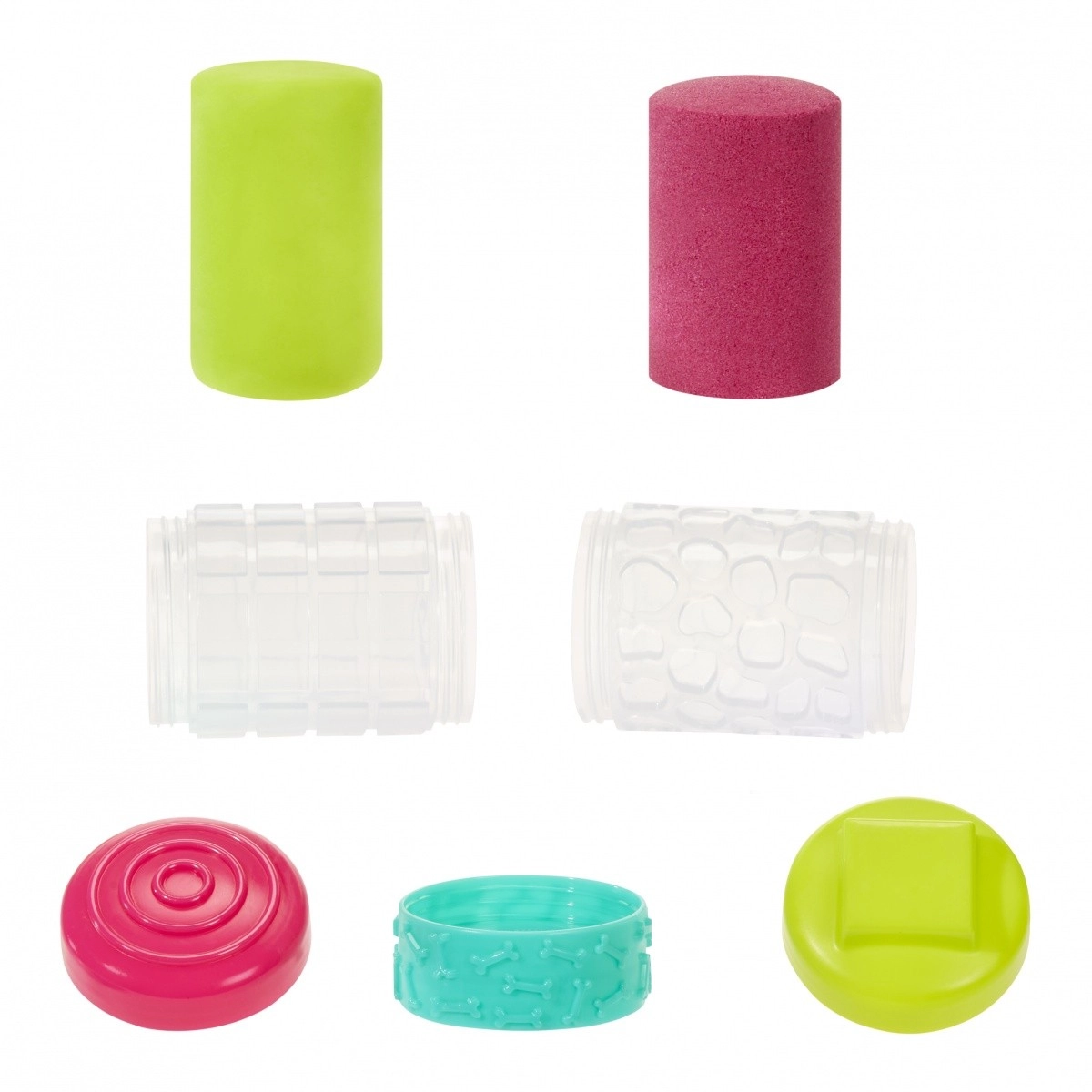 - 1 tube de sable, 1 tube de pâte, 2 couvercles avec tampons, 1 connecteur/rouleau à textures