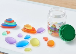 Ensemble de 36 pierres translucides en 6 couleurs et de formes et tailles variées, idéal pour les panneaux lumineux, la création de motifs et mosaïques et le développement de la motricité fine ainsi que du langage mathématique. Leur texture agréable et la diffusion de la lumière favorisent le jeu sensoriel à la maison comme à l’école maternelle.
